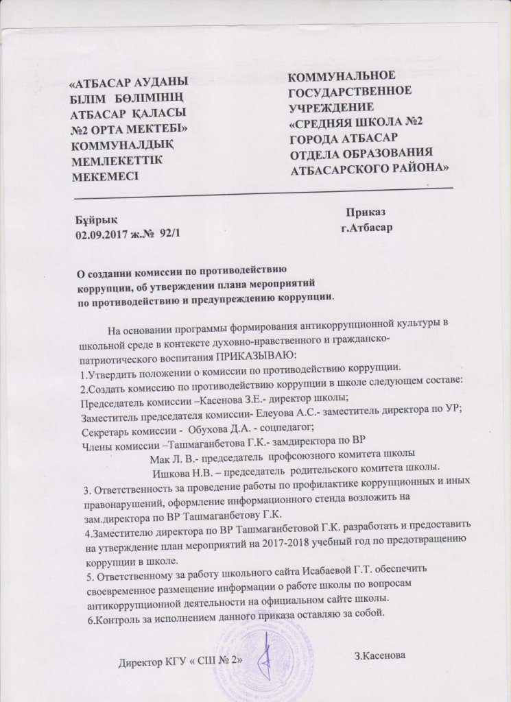 Коммунальное государственное учреждение "Общеобразовательная школа №2 города Атбасар отдела образования по  Атбасарскому району управления образования Акмолинской области"