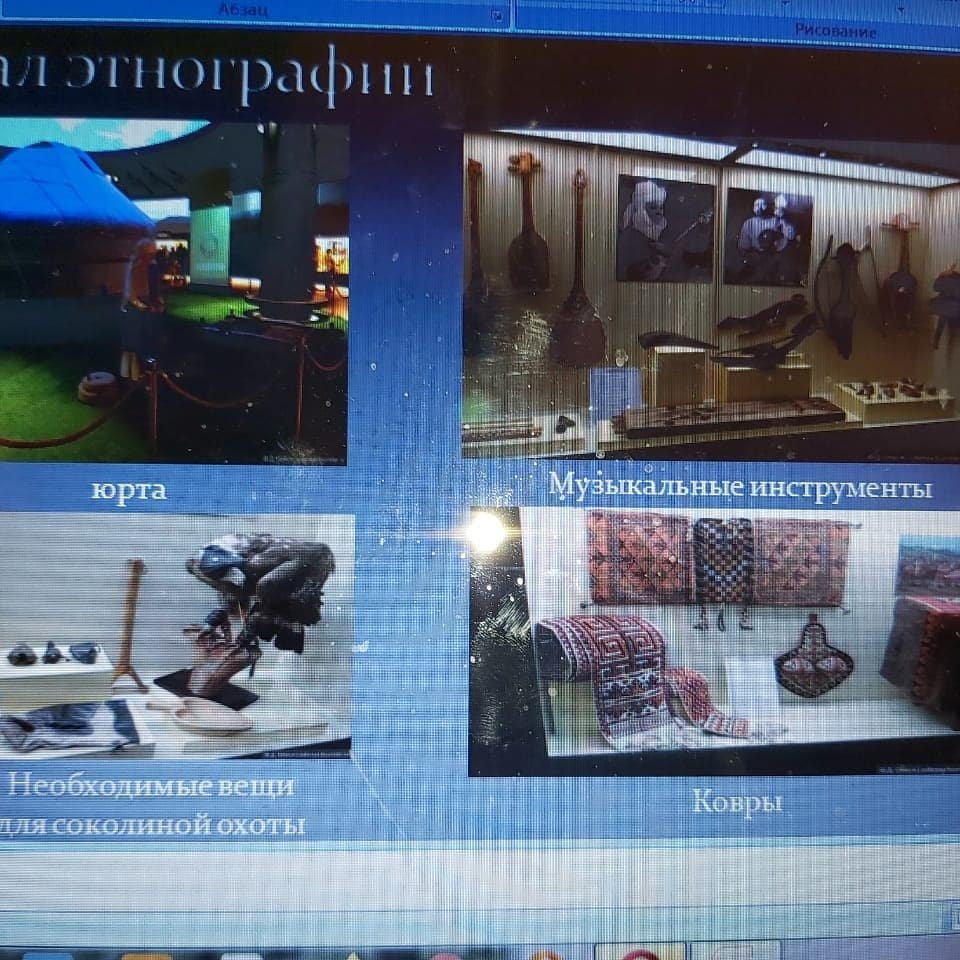 11.11.2020 жылы 5 «в» сыныбында «Қазақстан Республикасының Ұлттық музейіне виртуалды экскурсия» тақырыбында сыныптан тыс іс-шара өткізілді. «Қазақстан Республикасы Ұлттық музейінің ресми сайты арқылы мұражайға онлайн-экскурсия жүргізілді. Экскурсоводтың бейне презентациясы арқасында біз еліміздің қалыптасу тарихы туралы көптеген қызықты мәліметтерді білдік, өйткені бұл музейдің залдарында құнды тарихи экспонаттар, ұлттық ою-өрнектер, әр түрлі кезеңдердегі декорациялар, сонымен қатар біздің заманымыздың экспонаттары қойылған (Астана залы). Бұған дайындалған презентация мен гидтің бейне презентациясы дәлел. Бұл сыныптан тыс шара студенттерге еліміздің ұлттық дәстүрлері мен мәдениетімен танысуға мүмкіндік берді. Студенттер пікірталасқа белсенді қатысты.
