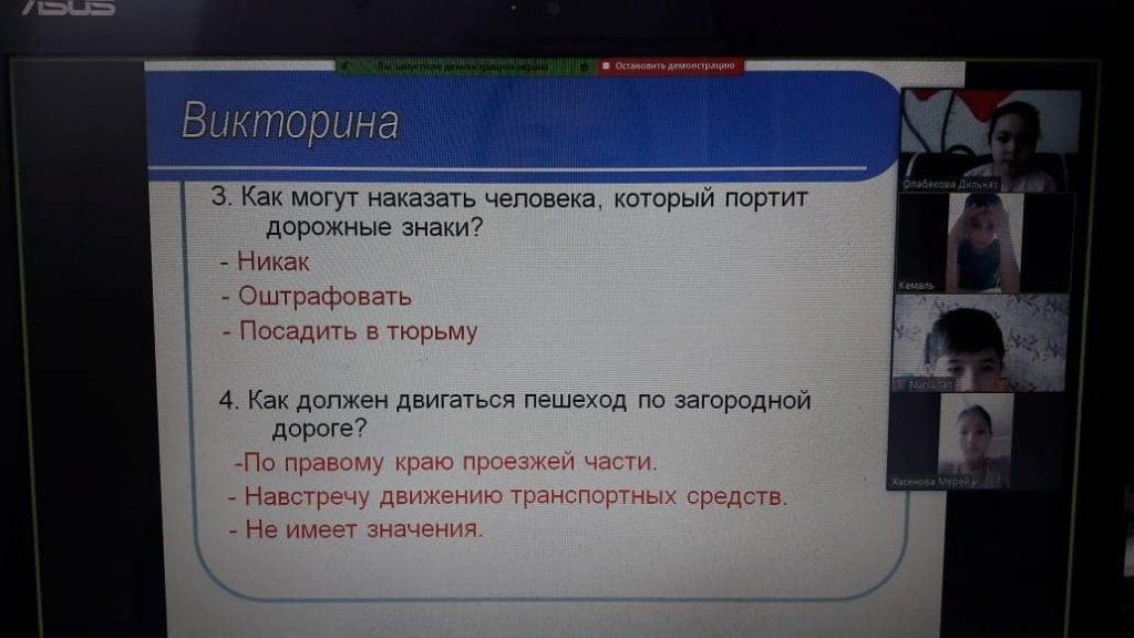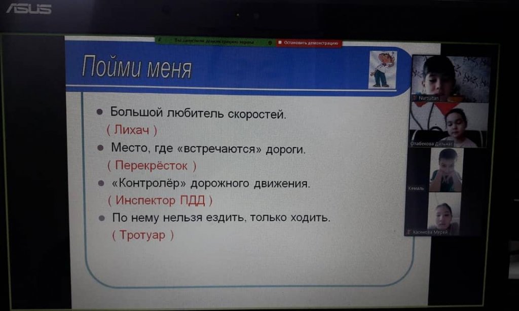 12 қарашада 5 «А» сыныбында «Қызыл, сары, жасыл» жол ережелері бойынша викторина өткізілді. Алдымен оқушылар жол ережелері туралы бейнематериалды тамашалады. Содан кейін балалар викторинаның сұрақтарына жауап берді, тақырыптар бойынша жұмбақтар тапты, жол белгілерін еске түсірді. Қорытындылай келе, балалар әрқашан және барлық жерде жолда сақ болуға уәде берді.
