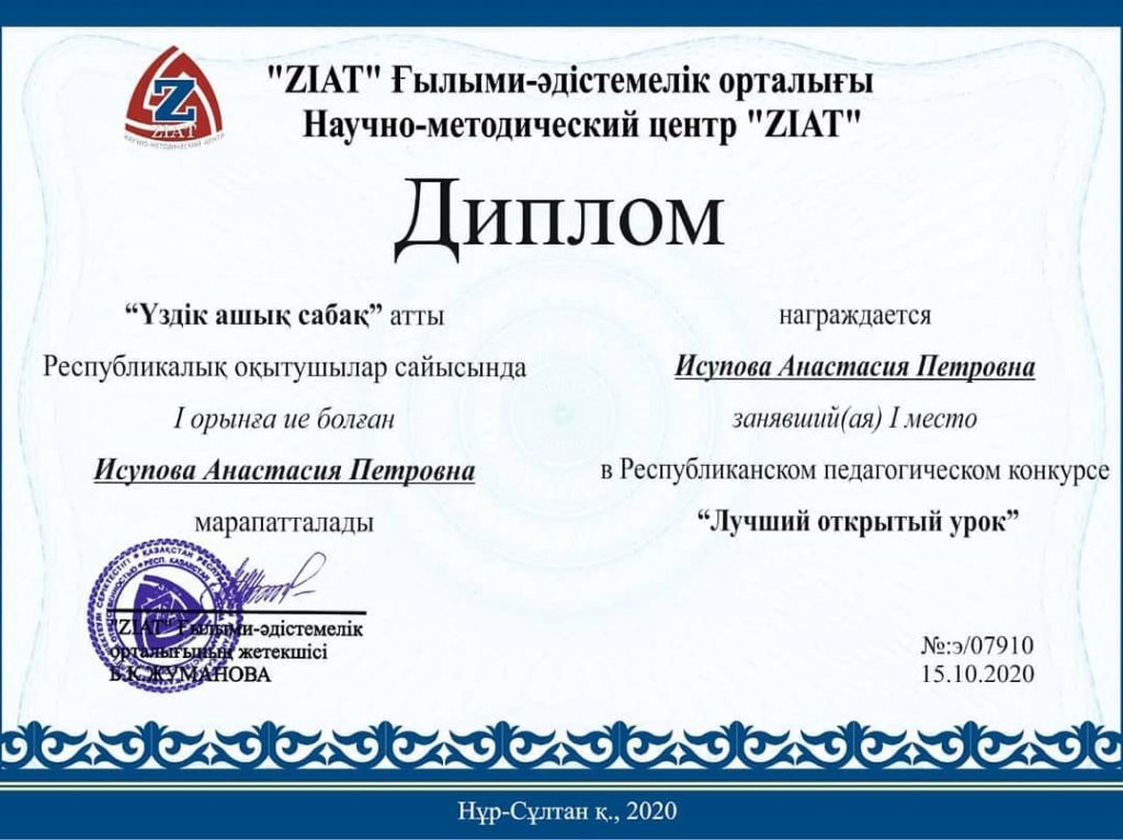 Біздің мектептің мұғалімдері үшін кәсіби шеберлік байқауларына қатысу және жеңіске жету одан әрі жетілдіруге күш береді, олардың тәжірибесін байытуға және өз жетістіктері мен жетістіктерімен бөлісуге мүмкіндік береді, шығармашылық пен өзін-өзі дамытуға жаңа серпін береді.